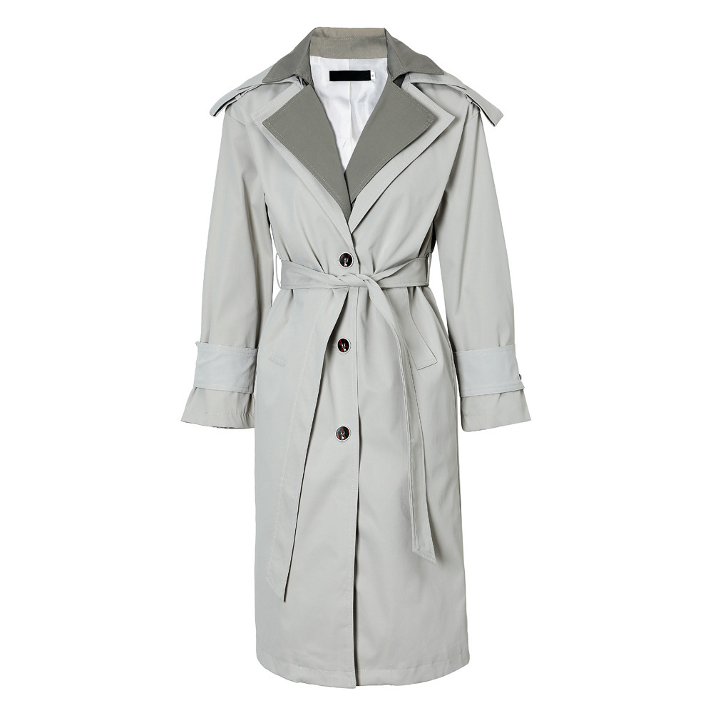 | nameOriginal | Korean style design British style coat autumn and winter new fake two-piece loose all-match mid-length elegant trench coat |