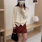 الكورية نمط تصميم اللون زر طاقم الرقبة سترة مشغولة من الصوف المرأة 2024 الخريف والشتاء جديد أنيق لينة شمعي الخارجي المنسوجة سترة سترة