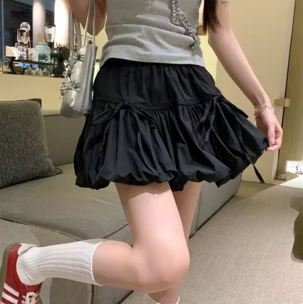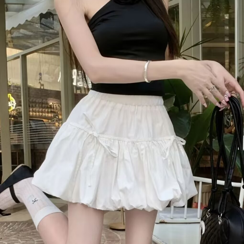 Korean Style Design Sense Bow Strap Skirt Women's Summer Elegant Sweet A- line Skirt Slimming All-match Skirt