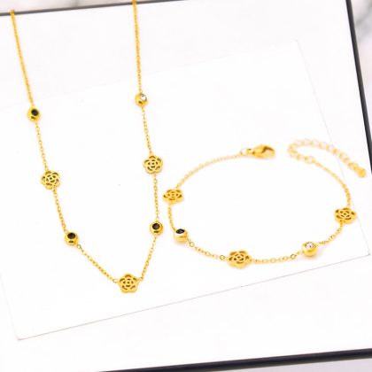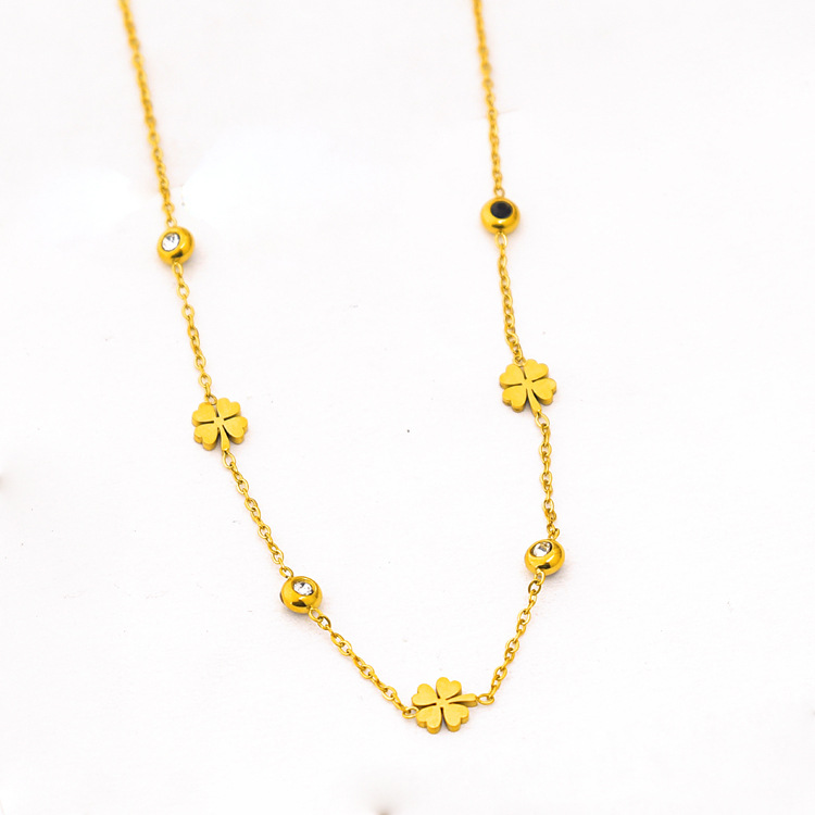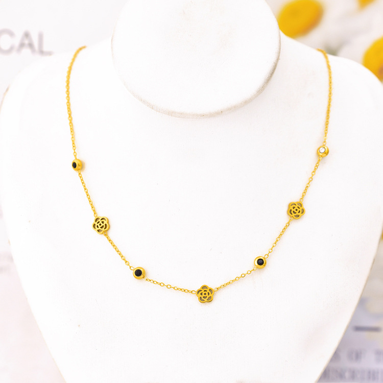 | nameOriginal | Korean style diamond-embedded hollow Camellia necklace lucky grass love diamond-shaped flower titanium steel clavicle chain pendant simple jewelry |