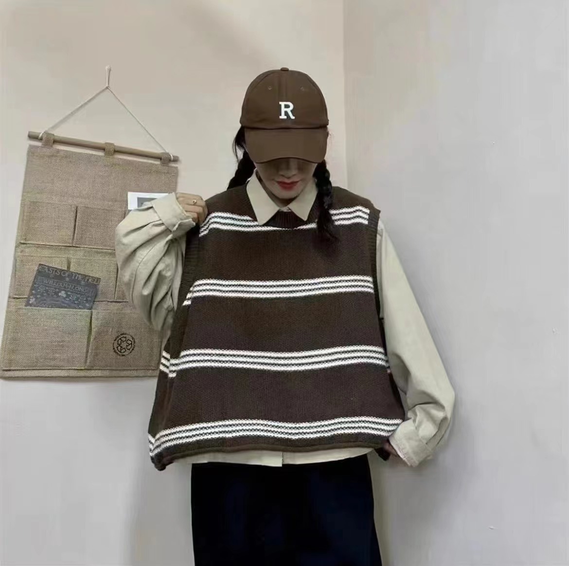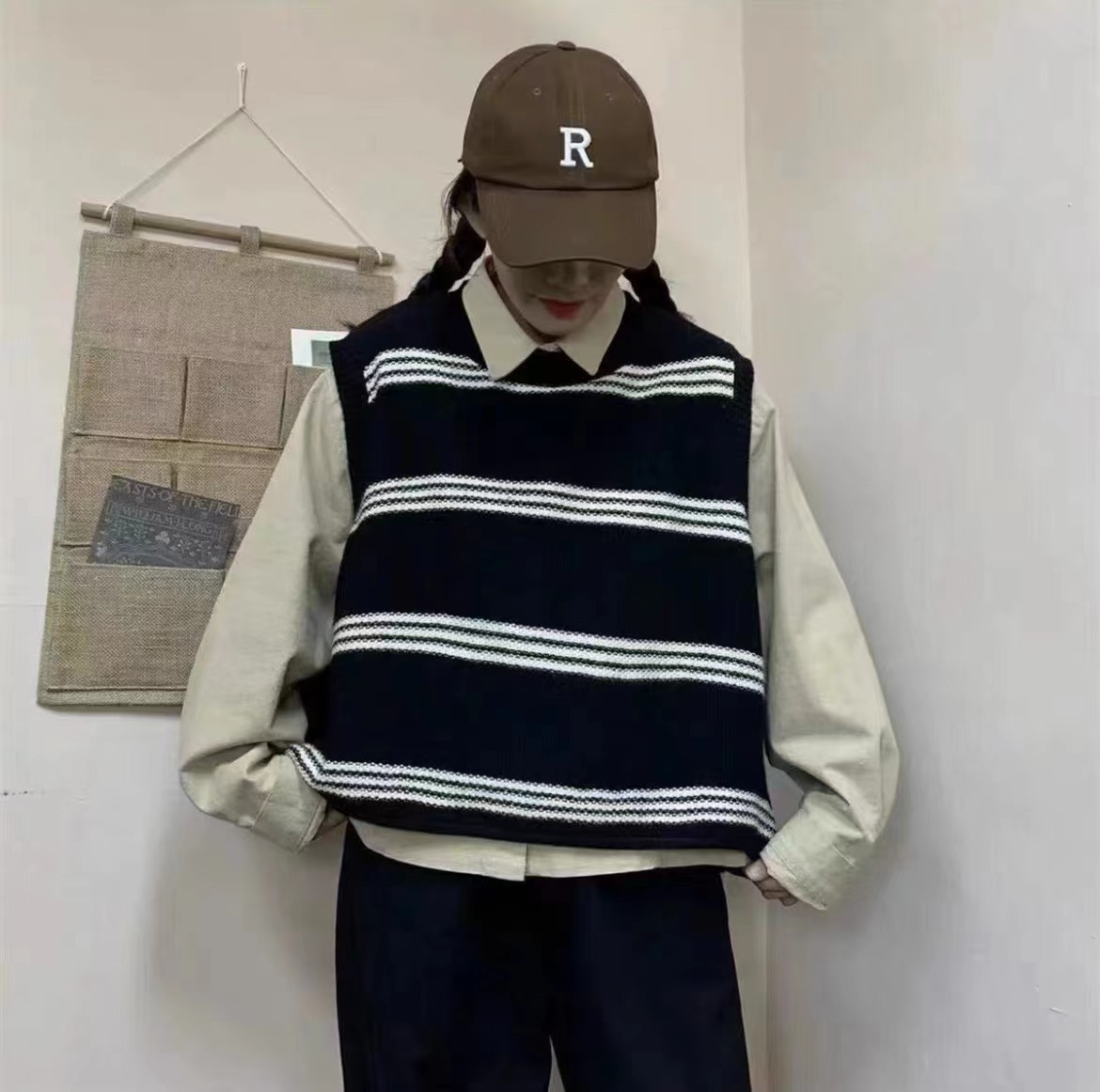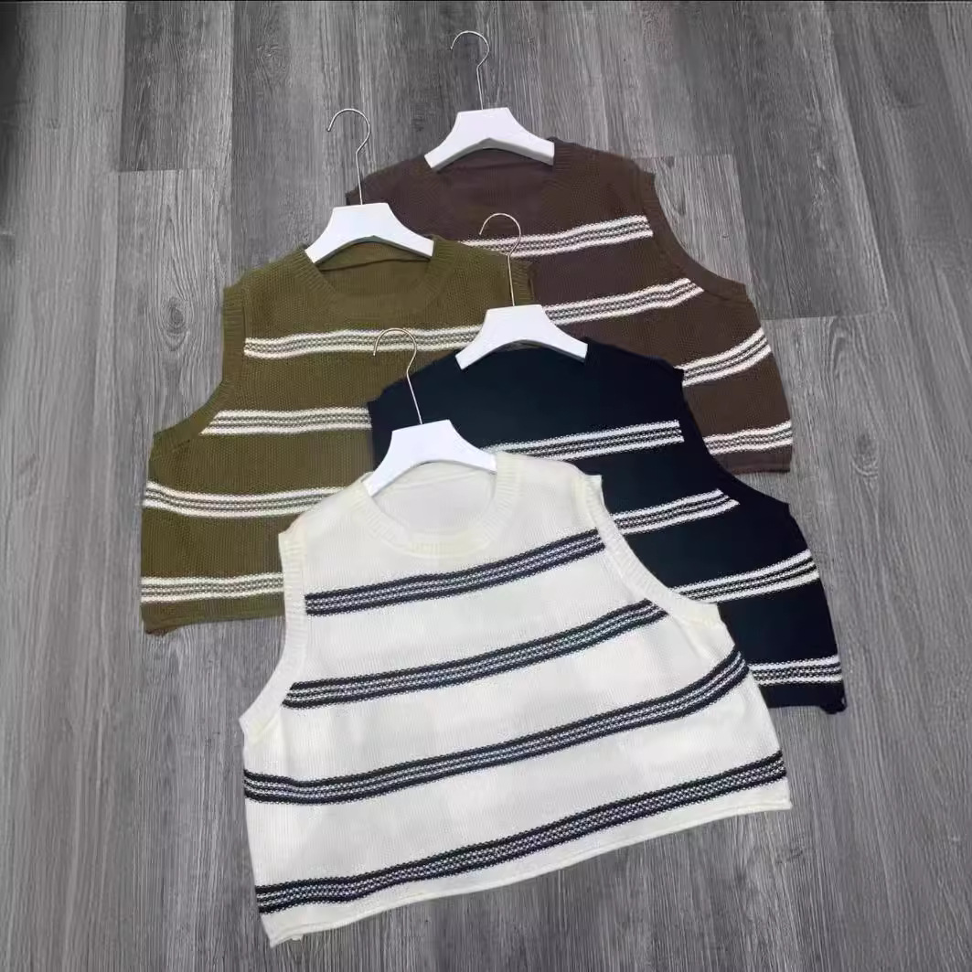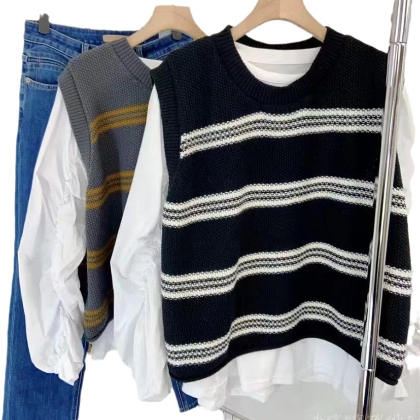 | nameOriginal | Korean-style Dongdaemun Striped Color-matching Loose Lazy Style Knitted Vest Women's Round Neck Stacked Knitted Top for Women |