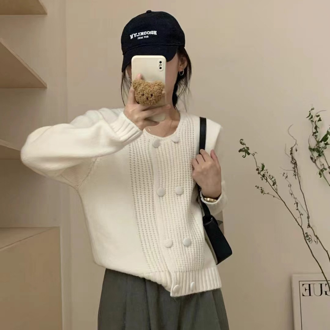 | nameOriginal | Korean-style Double-breasted Sweater Coat Women's 2024 Early Autumn New Loose Lazy Style All-match Knitted Cardigan Top |