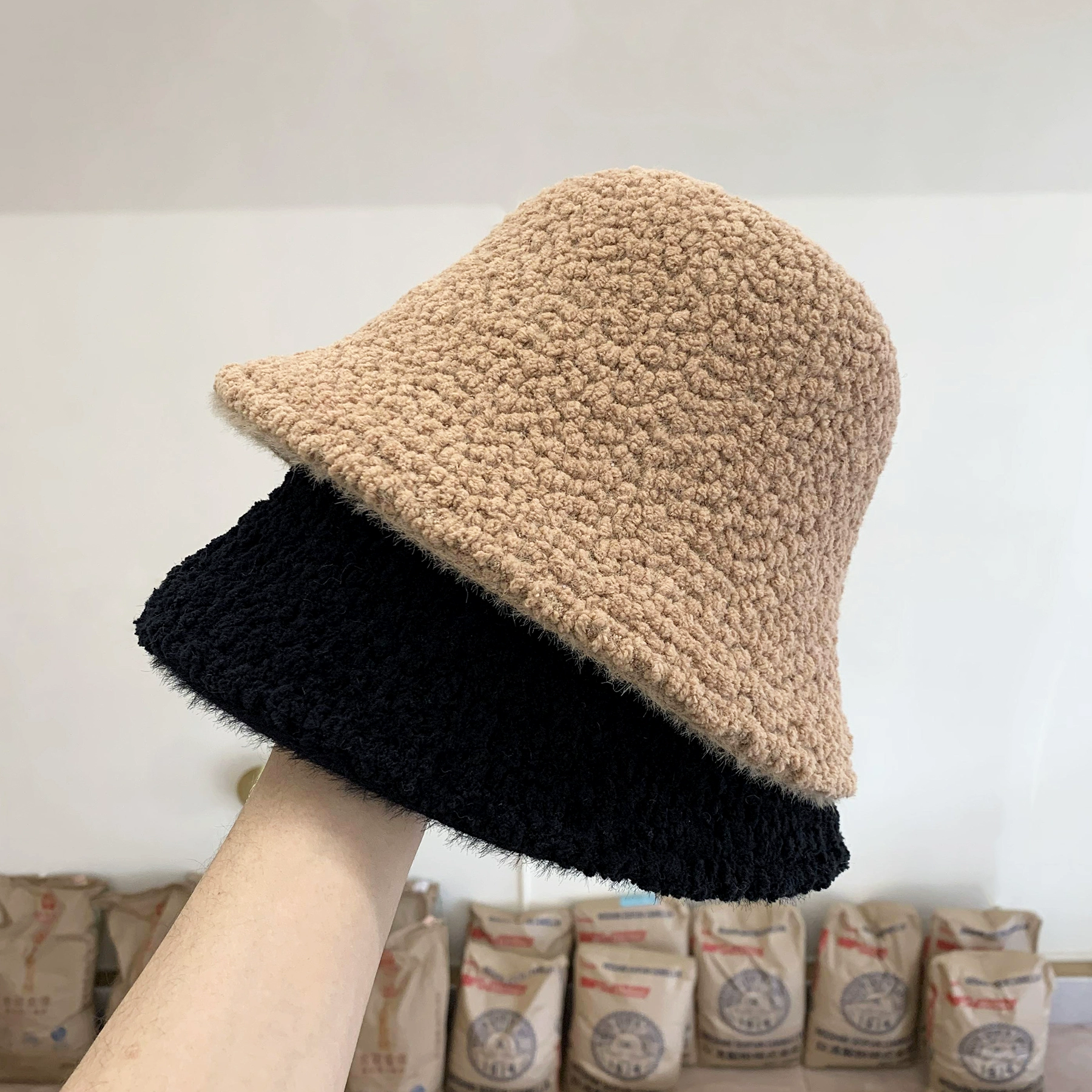 | nameOriginal | Korean style double-sided fisherman hat for women in autumn and winter grained lamb plush warm bucket hat Japanese casual all-match basin hat |