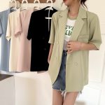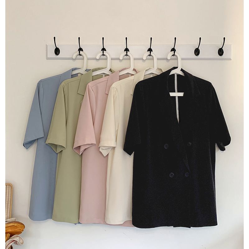 سترة بدلة أنيقة غير رسمية بأكمام قصيرة على الطراز الكوري للنساء لصيف 2024 وصلت حديثًا بدلة فضفاضة ضيقة مناسبة لصغيرتي