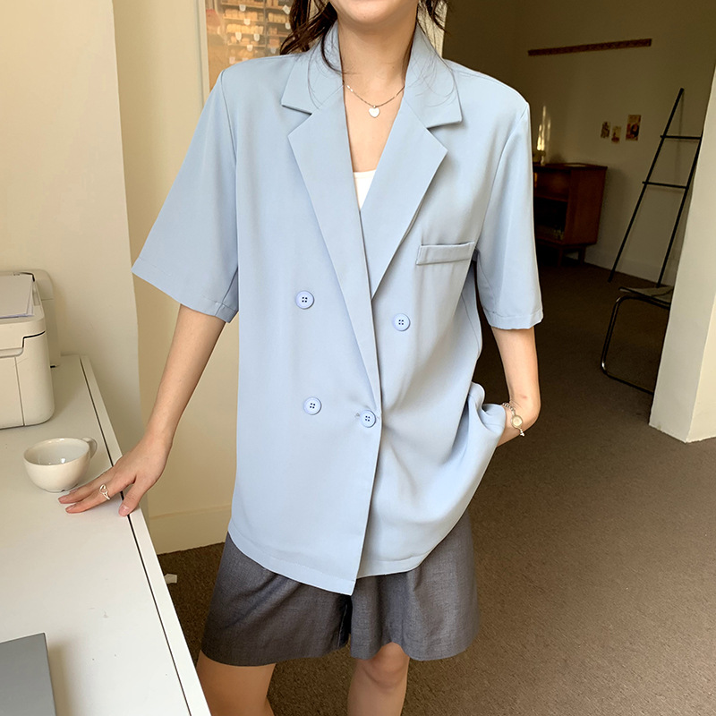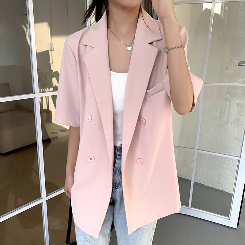 Korean Style Elegant Casual Short-sleeved Suit Jacket Women's 2024 Summer New Arrival Loose Slim-fit Suit Top for Petite