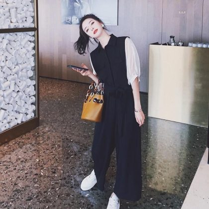 | nameOriginal | Korean-style Fake Two-piece Color One-piece Pants Women's 2023 Summer New Style Elegant High-grade Light Mature Slimming Workwear Wide-leg Pants |