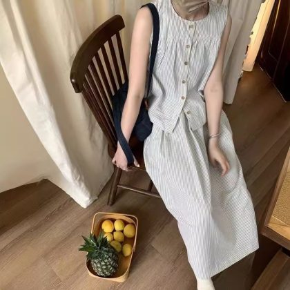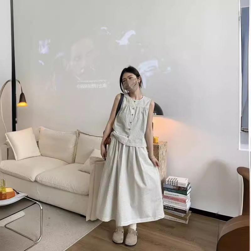 | nameOriginal | Korean Style Fashionable suit Women's Summer 2024 New Lazy Style Vest High Waist Slimming Stylish Grey White Skirt |