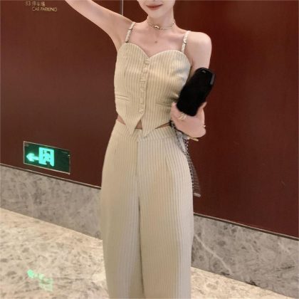 | nameOriginal | Korean Style Fashionable Two-Piece Women's Summer New Vintage Cyber Celebrity Slim-Fit Slimming Striped Camisole Wide-Leg Trousers |