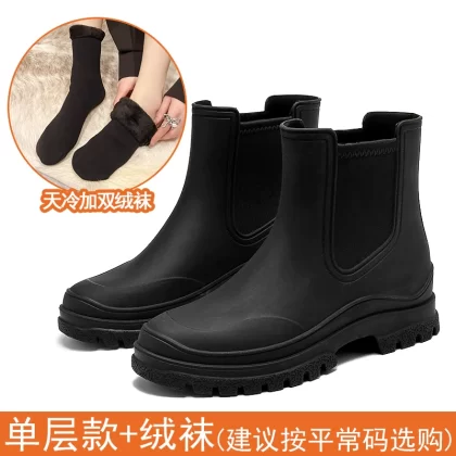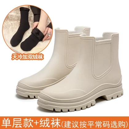 Korean style fashionable women's water boots short-tube thick-soled high-end wear-resistant rain boots high-end outer rain boots students and adults rubber shoes