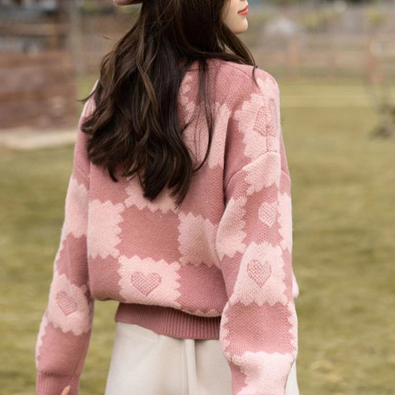 | nameOriginal | Korean Style Flower Contrast Color Love Knitted Sweater Women's 2023 Autumn and Winter New Lazy Style Loose Chessboard Plaid Pullover |
