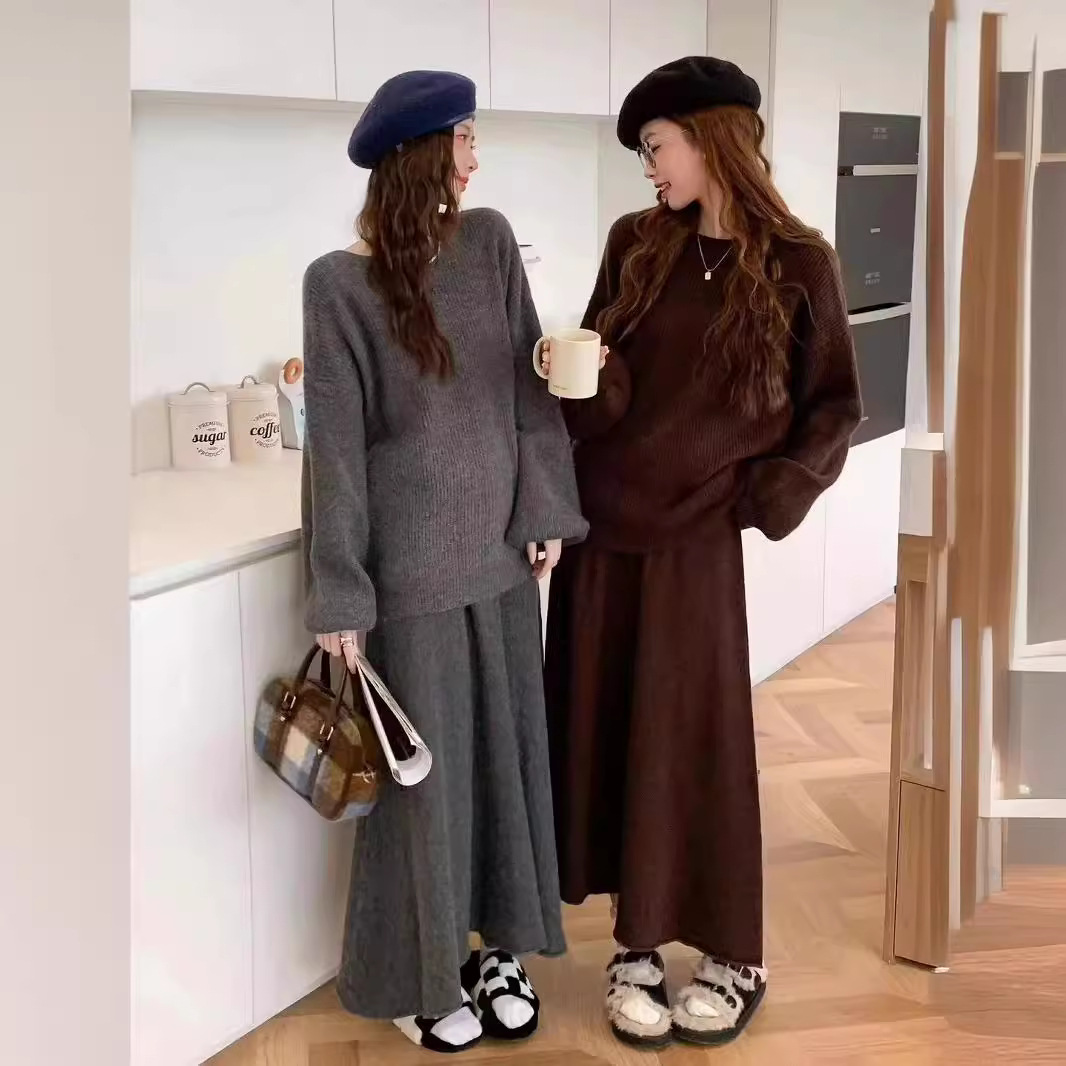 | nameOriginal | Korean Style Gentle Style Knitted Soft Waxy Sweater suit Bubble Sleeve Lazy Style Sweater High Waist Skirt Two-piece Set for Women |