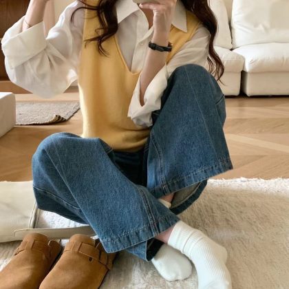 | nameOriginal | Korean Style Gentle Style Solid Color Knitted Vest Women's 2024 New Autumn and Winter Stacked V-neck Versatile Vest Top Trendy 244 |