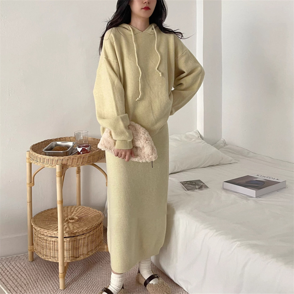 | nameOriginal | Korean style hooded bottoming knitted sweater skirt suit women's autumn and winter New inner sweater two pieces suit women's |
