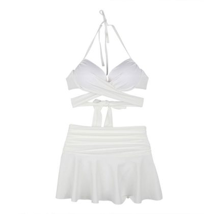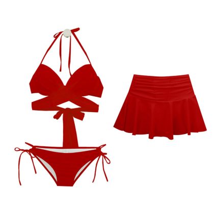 | nameOriginal | Korean style lace-up sexy backless swimsuit women's small chest steel support gathered high waist belly covering split skirt triangle swimsuit |