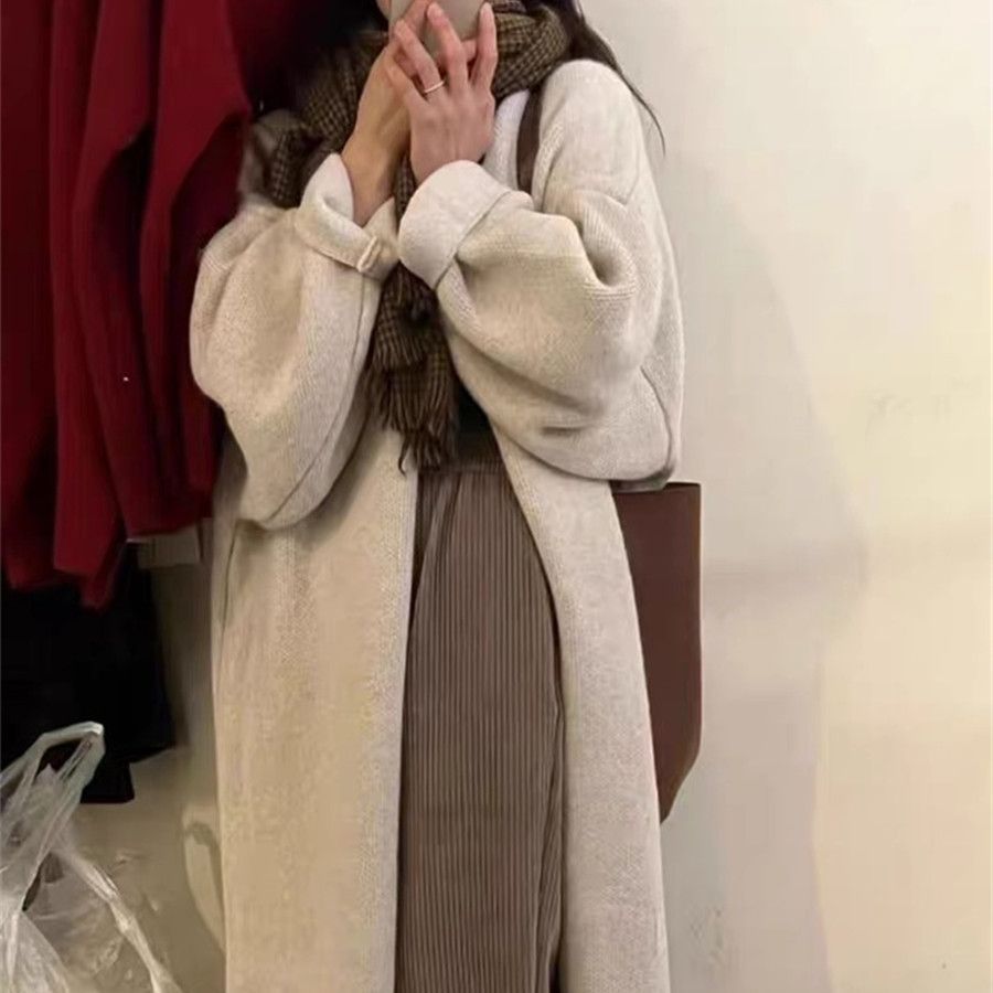 Korean style lazy style long knitted cardigan for women 2024 spring new loose slimming solid color sweater coat overcoat