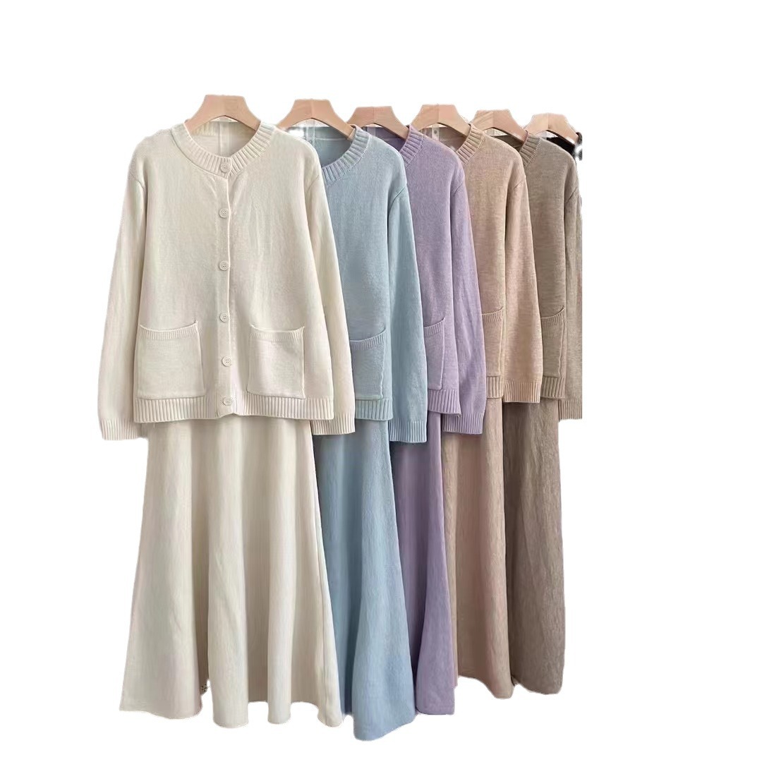 | nameOriginal | Korean Style Lazy Style Solid Color Knitted Sweater suit Autumn and Winter New Simple Casual Cardigan Skirt Two-piece Set for Women |