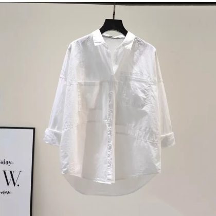 nameOriginal | Korean Style light blue Double Pocket Cotton Shirt Women's Fresh Style Literary Style BF Spring and Autumn Design Sense Loose Shirt |