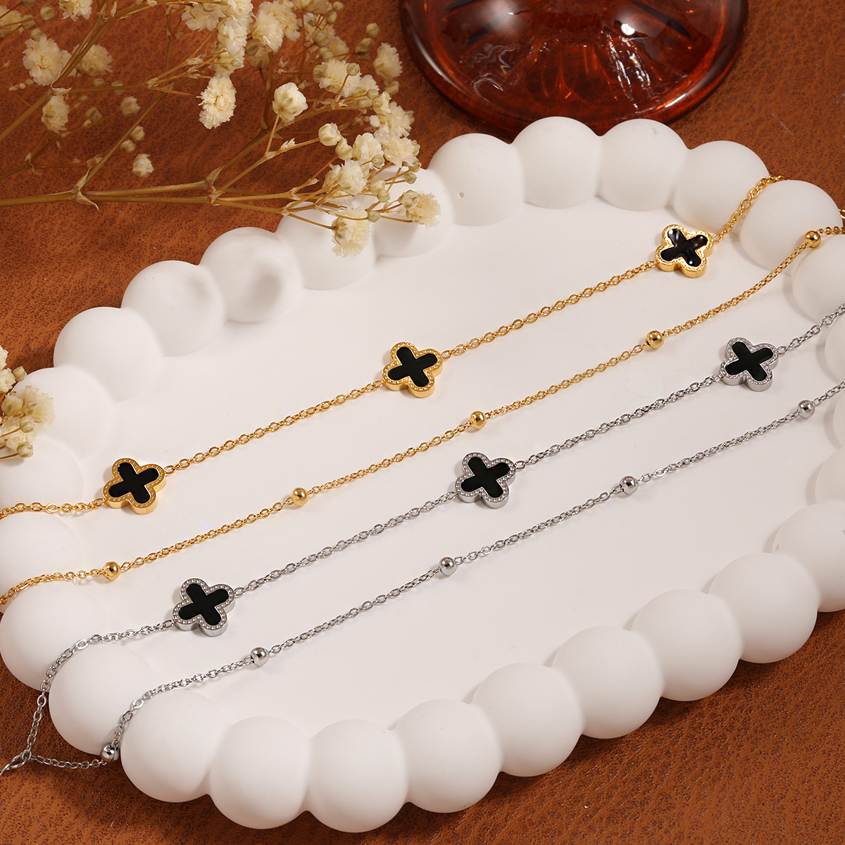 | nameOriginal | Korean-style Light Luxury Fashionable Simple Four-leaf Clover Double-layer Bead Anklet Women's Distinctive Niche High-end Titanium Steel Anklet |