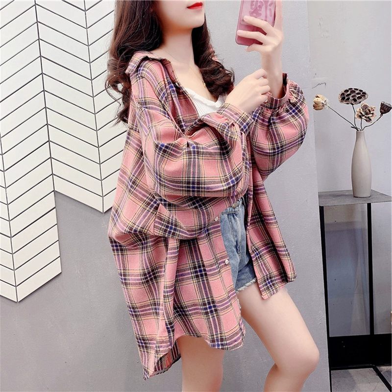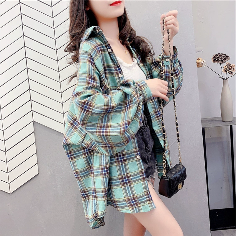 | nameOriginal | Korean style loose-fitting versatile long-sleeved plaid shirt |