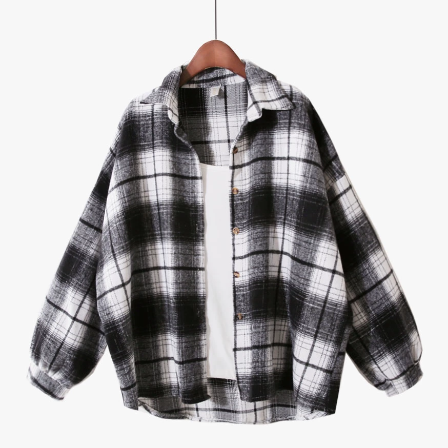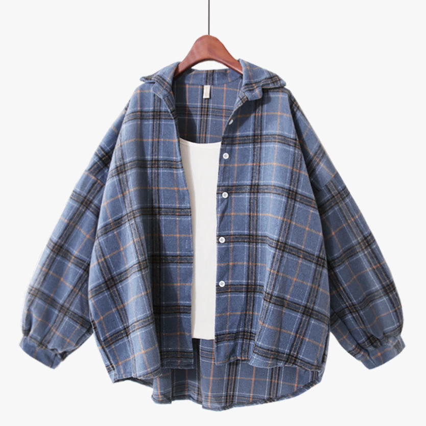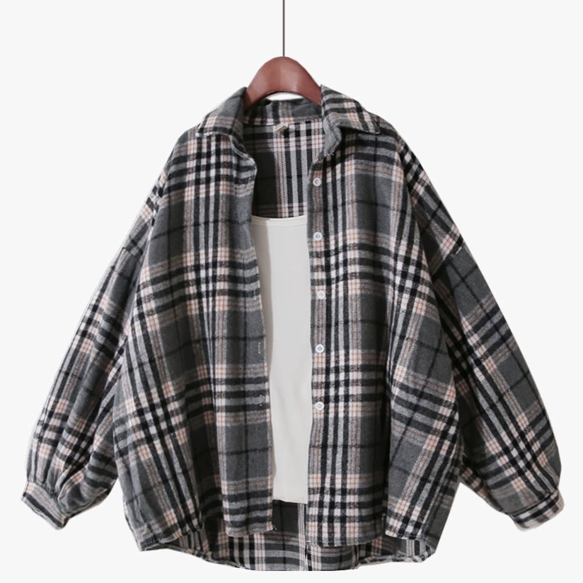 | nameOriginal | Korean style loose large size long sleeve plaid woolen cardigan |