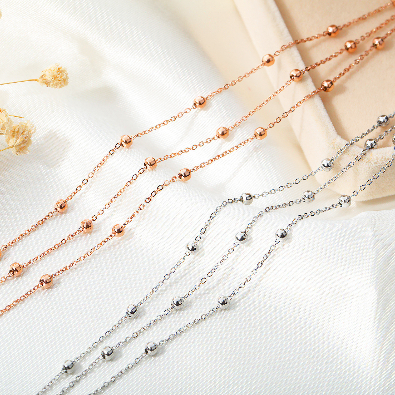 Korean Style Mori Style All-match Round Bead Multi-layer Anklet Accessories Niche Design High-grade Fold Stainless Steel Foot Accessories