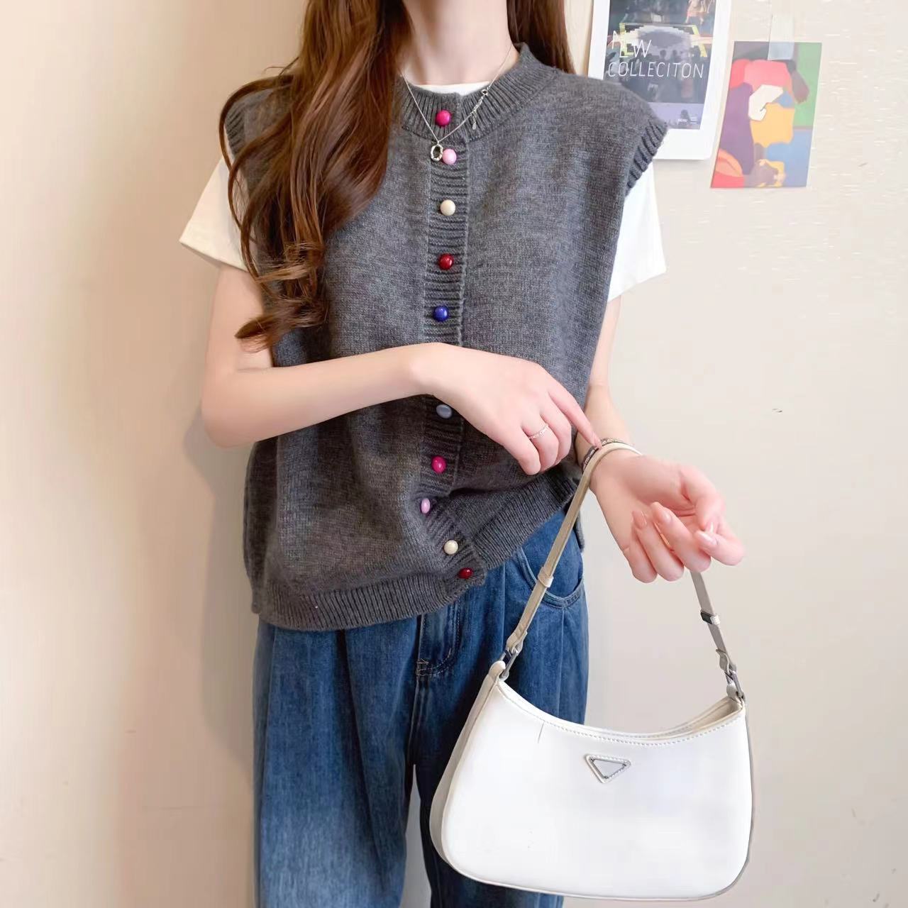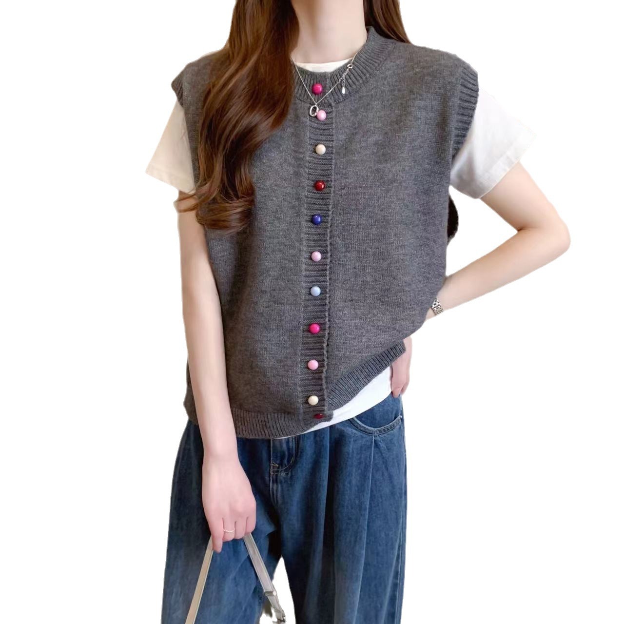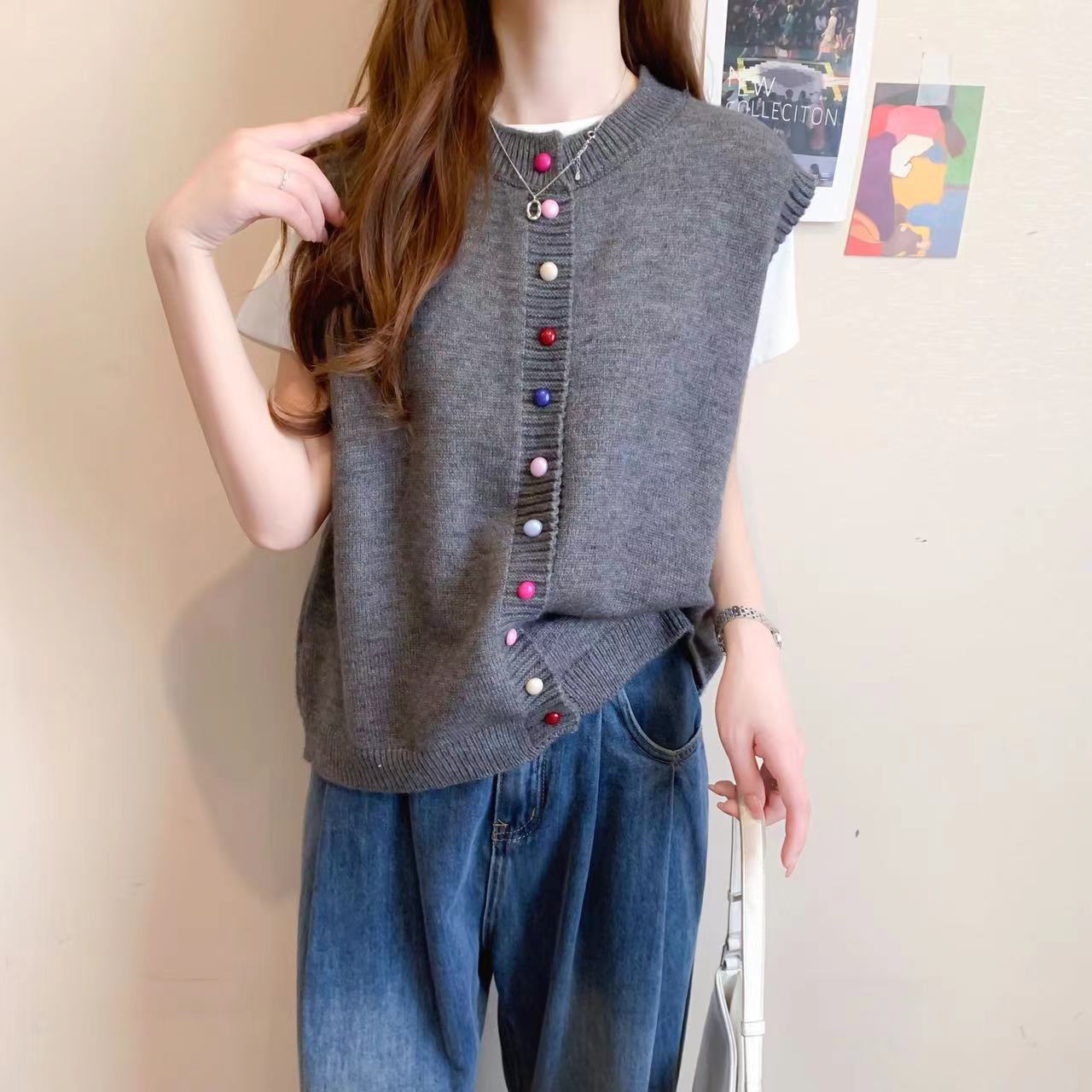 | nameOriginal | Korean Style Round Neck Color Button Women's Sweater Vest Overlapped for Autumn and Winter New Loose Knitted Cardigan Vest Top |