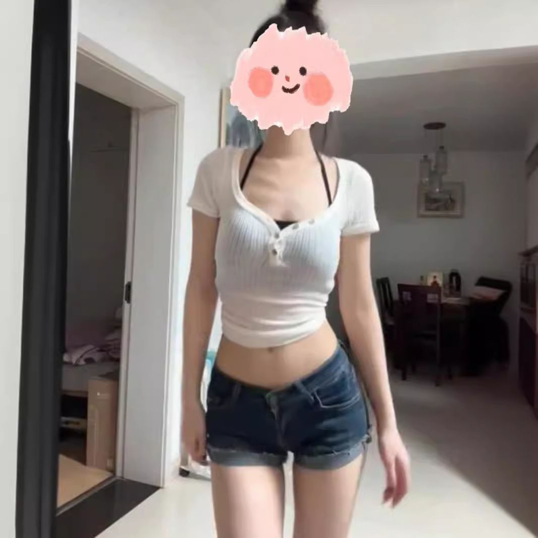 Korean Style Sexy Micro-transparent Button V-neck White Short-sleeved T-shirt Women's Summer Slimming Design Chic Casual All-match Top