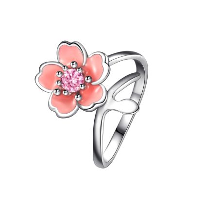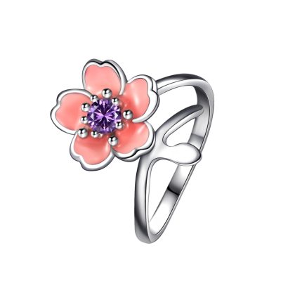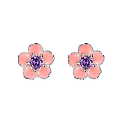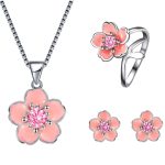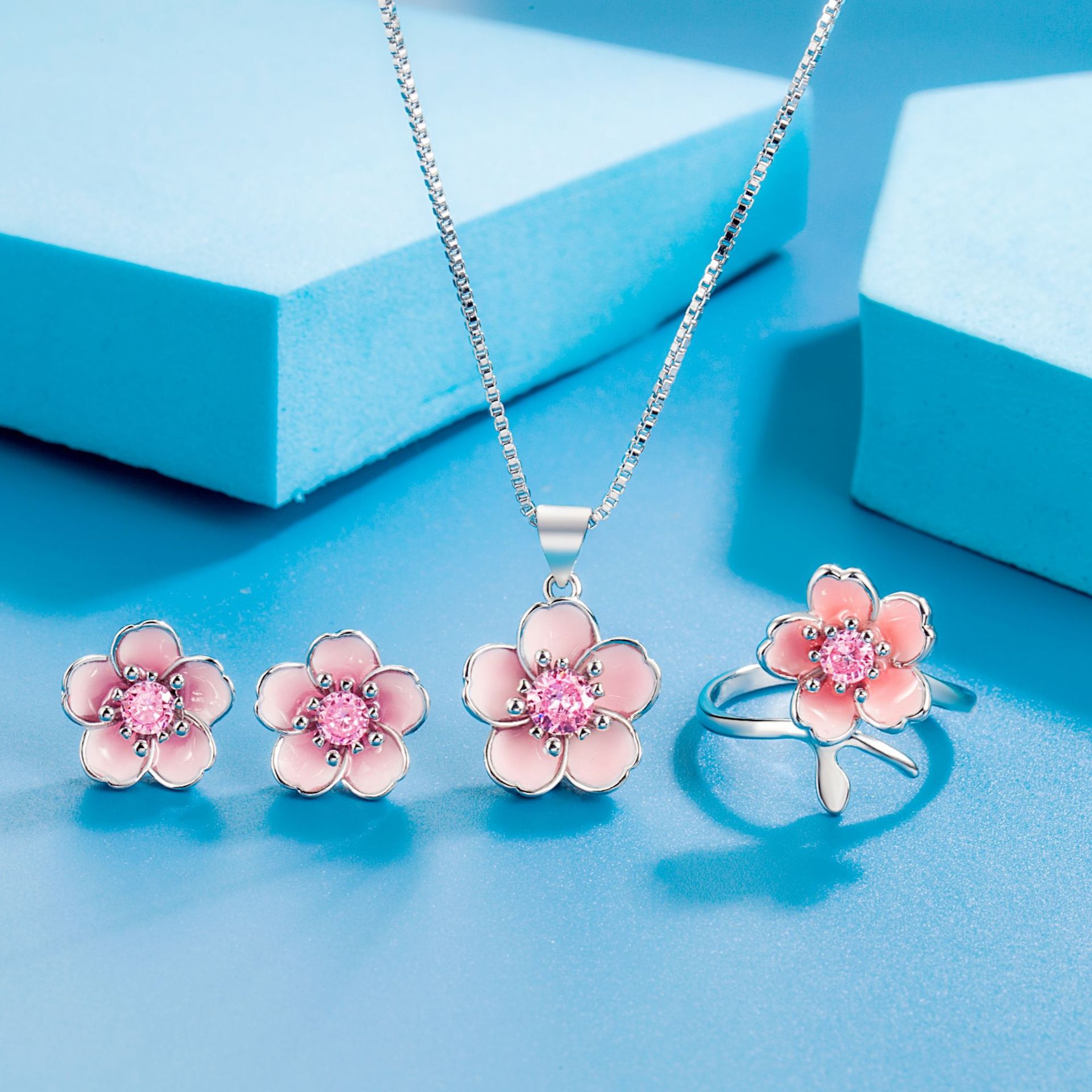 Korean style silver Sweet Peach enamel craft stud earrings pendant elegant epoxy Garland Pink Diamond cherry blossom jewelry set