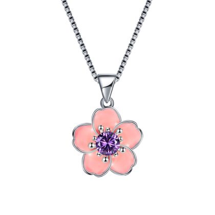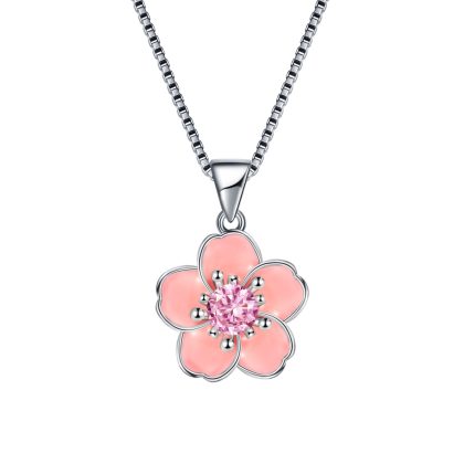 أقراط على الطراز الكوري مصنوعة من الفضة والمينا الخوخية الحلوة قلادة أنيقة من الإيبوكسي جارلاند الوردي الماسي مجموعة مجوهرات زهر الكرز