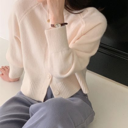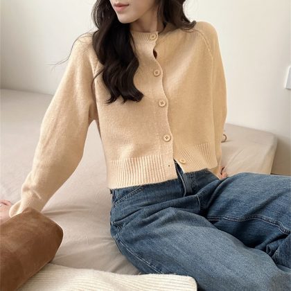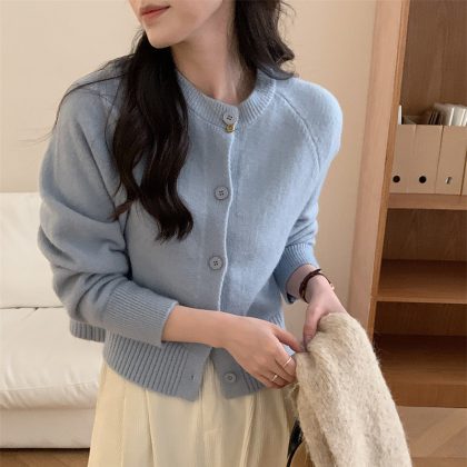 | nameOriginal | Korean Style Simple Short Knitted Cardigan Women's Autumn New Solid Color Round Neck Lazy Style Short Sweater for Women |