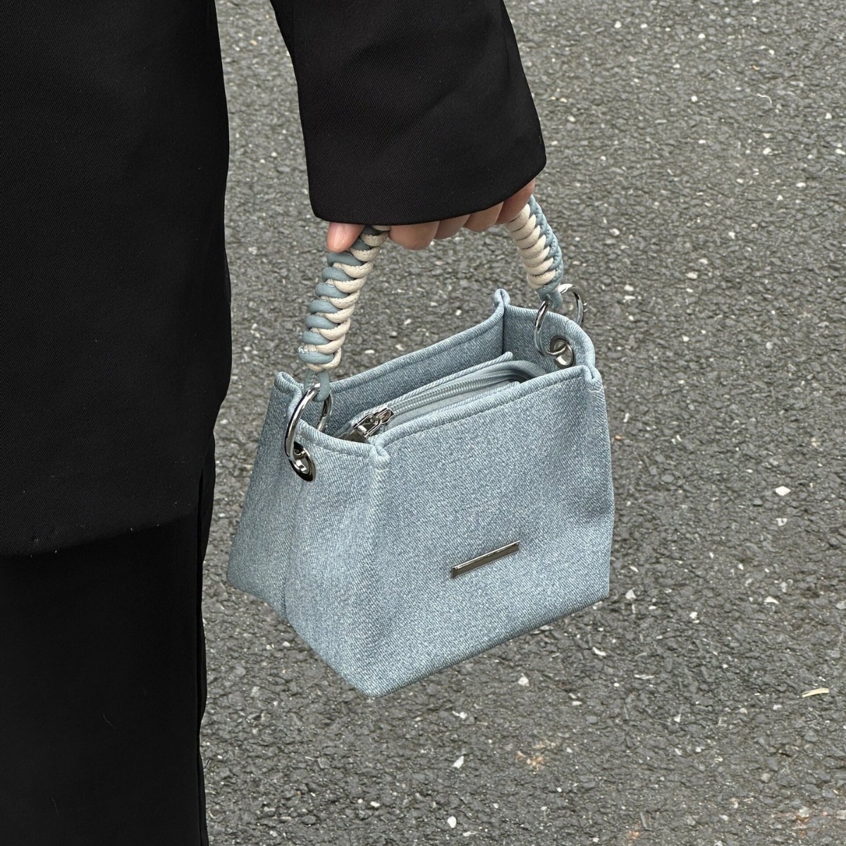 | nameOriginal | Korean Style Small Box Bag Women's 2024 New Commuter Chain Hand Bag Denim Bucket Bag Shoulder Crossbody Bag |