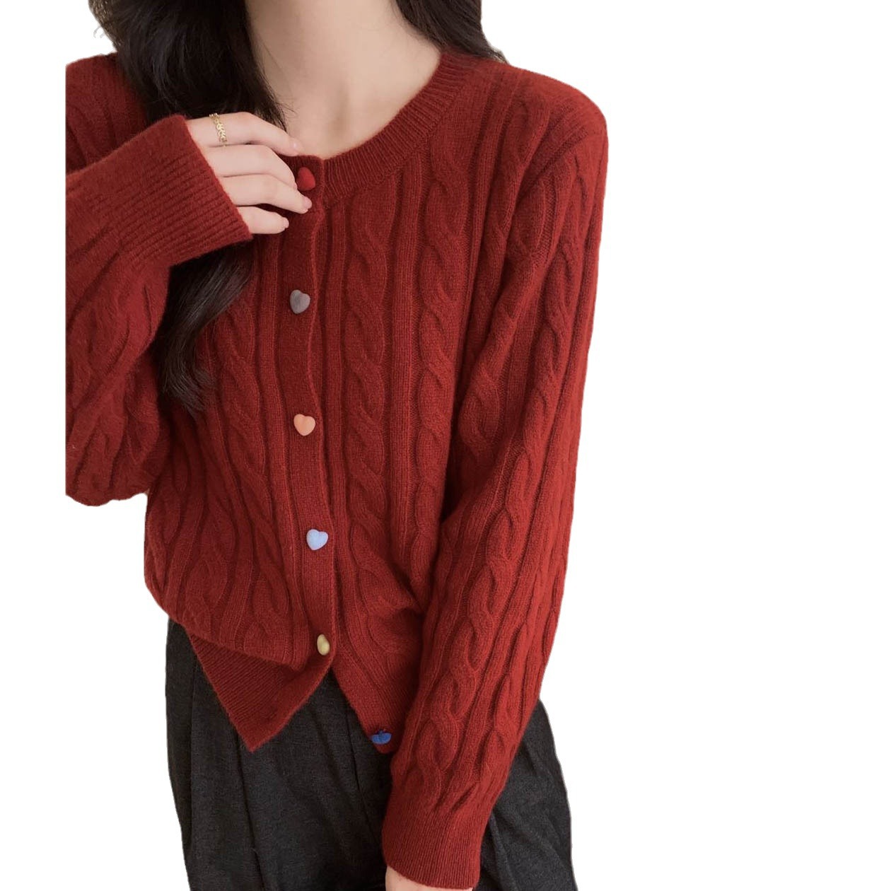سترة صوفية محبوكة ناعمة على الطراز الكوري، سترة سميكة ملتوية للخريف والشتاء، سترة نسائية محبوكة بأزرار الحب الملونة