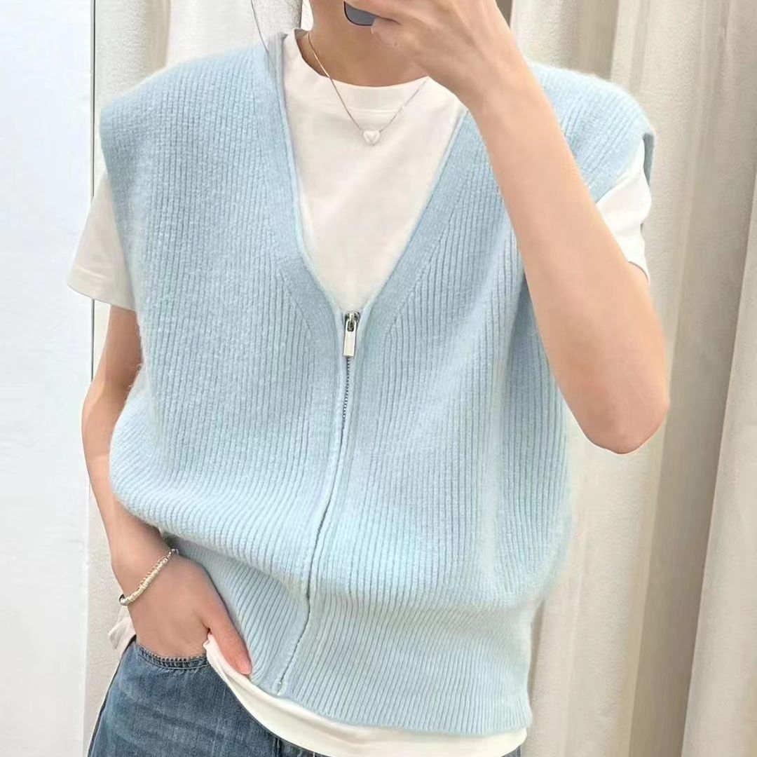 | nameOriginal | Korean style solid color V-neck sweater vest for women 2023 early Autumn New zipper knitted cardigan sleeveless vest top fashion |