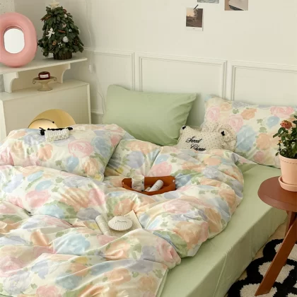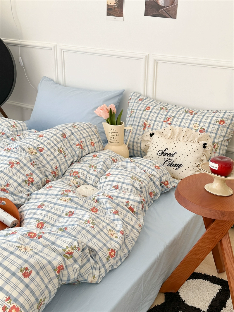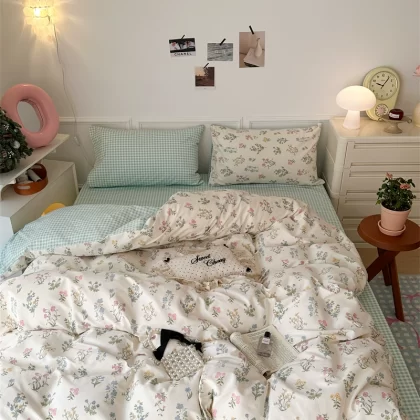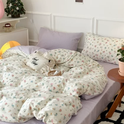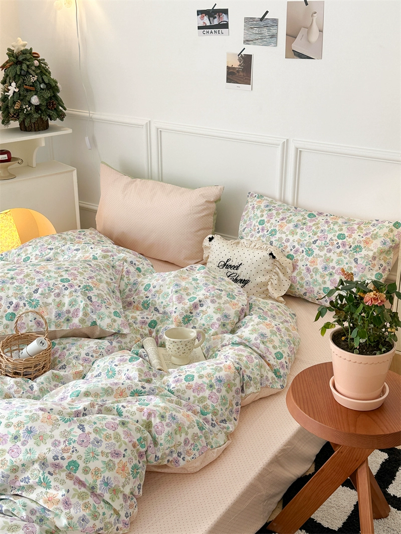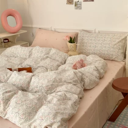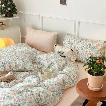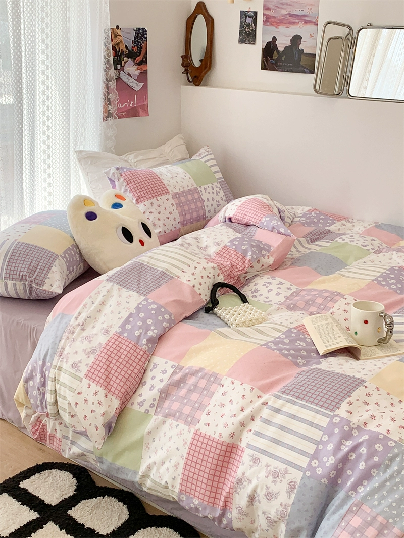 | nameOriginal | Korean style spliced floral cotton four-piece set girl's heart skin-friendly pure cotton quilt cover small fresh 1.5m1.8m bedding |