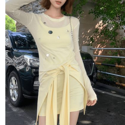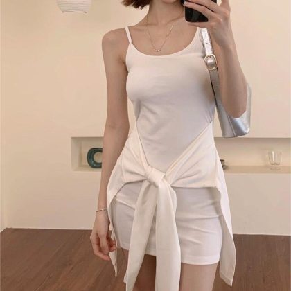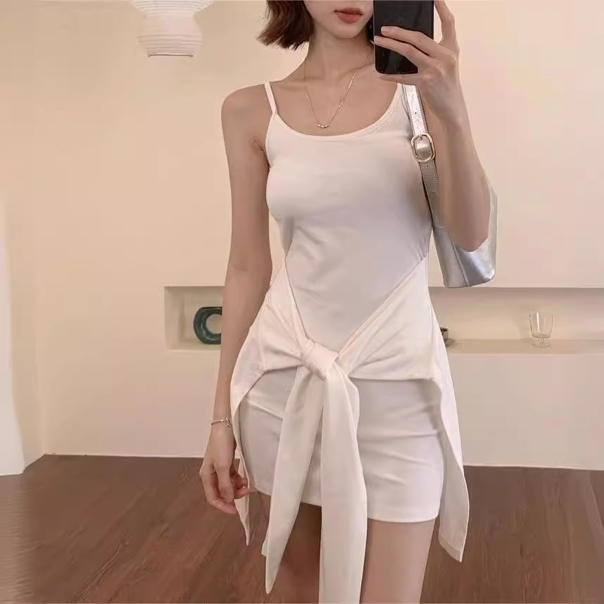 Korean Style Strap Fake Two-piece Spice Girl All-match U-neck Sleeveless Skirt Strap Women's Summer Fashion Design Sense for dress