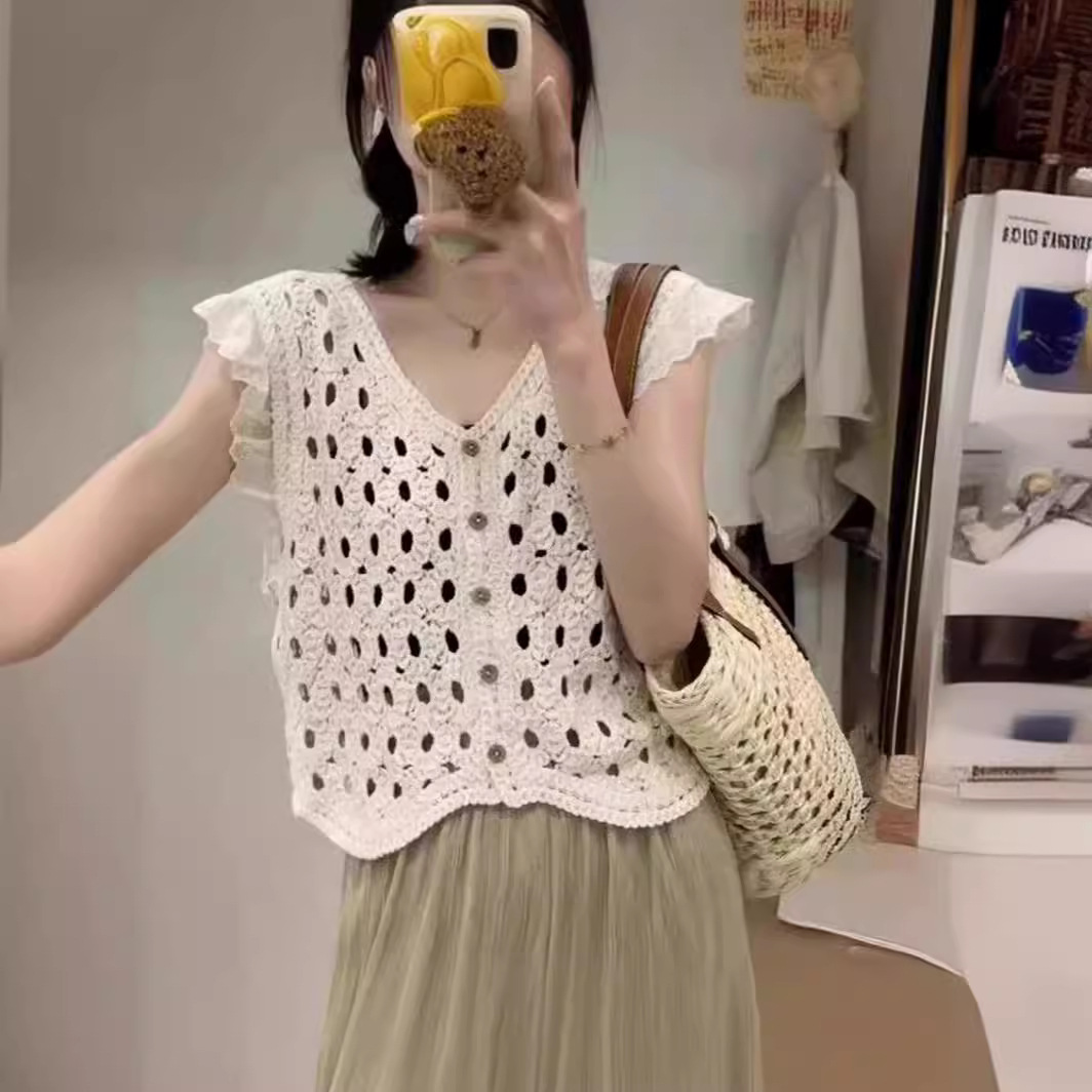 | nameOriginal | Korean-style Summer Crochet Hollow Outer Wearing Thin Outer Wearing High-grade Outer Waistcoat Women's Age-reducing Knitted Cardigan Vest Sling |