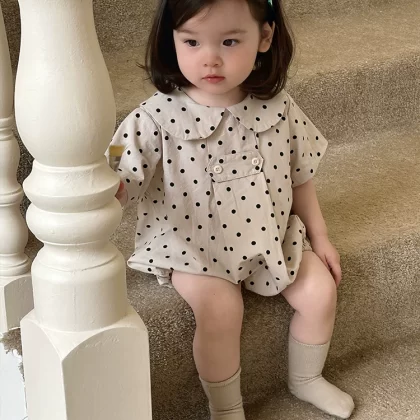 Korean style summer style baby girl doll collar polka dot short-sleeved harem baby fashionable pure cotton bag with lapels trendy romper