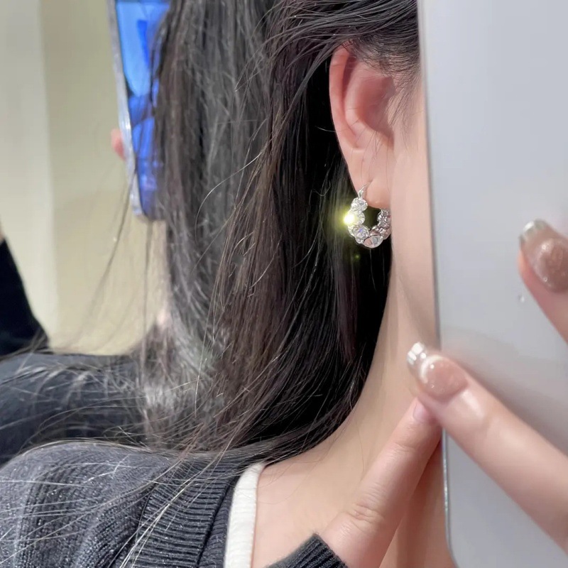 | nameOriginal | Korean Style Super Flash 2024 Spring Fashionable Distinctive Diamond Circle Ear Buckle Light Luxury High-end Fashion All-match Earrings for Women |