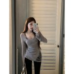| nameOriginal | Korean Style Sweet Long-sleeved Ripped Knitted T-shirt Women's Summer Thin Sunscreen Blouse Slim-fit Unique Chic Top |
