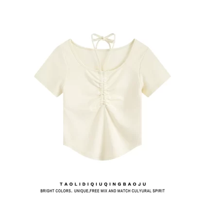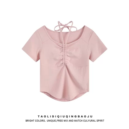 | nameOriginal | Korean style sweet solid color square neck short sleeve slimming halter neck |