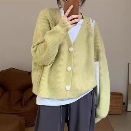 | nameOriginal | Korean Style V-neck Loose plus size Sweater Women's Autumn and Winter New Retro Classic Three-button Soft Waxy Oversized Sweater Coat |