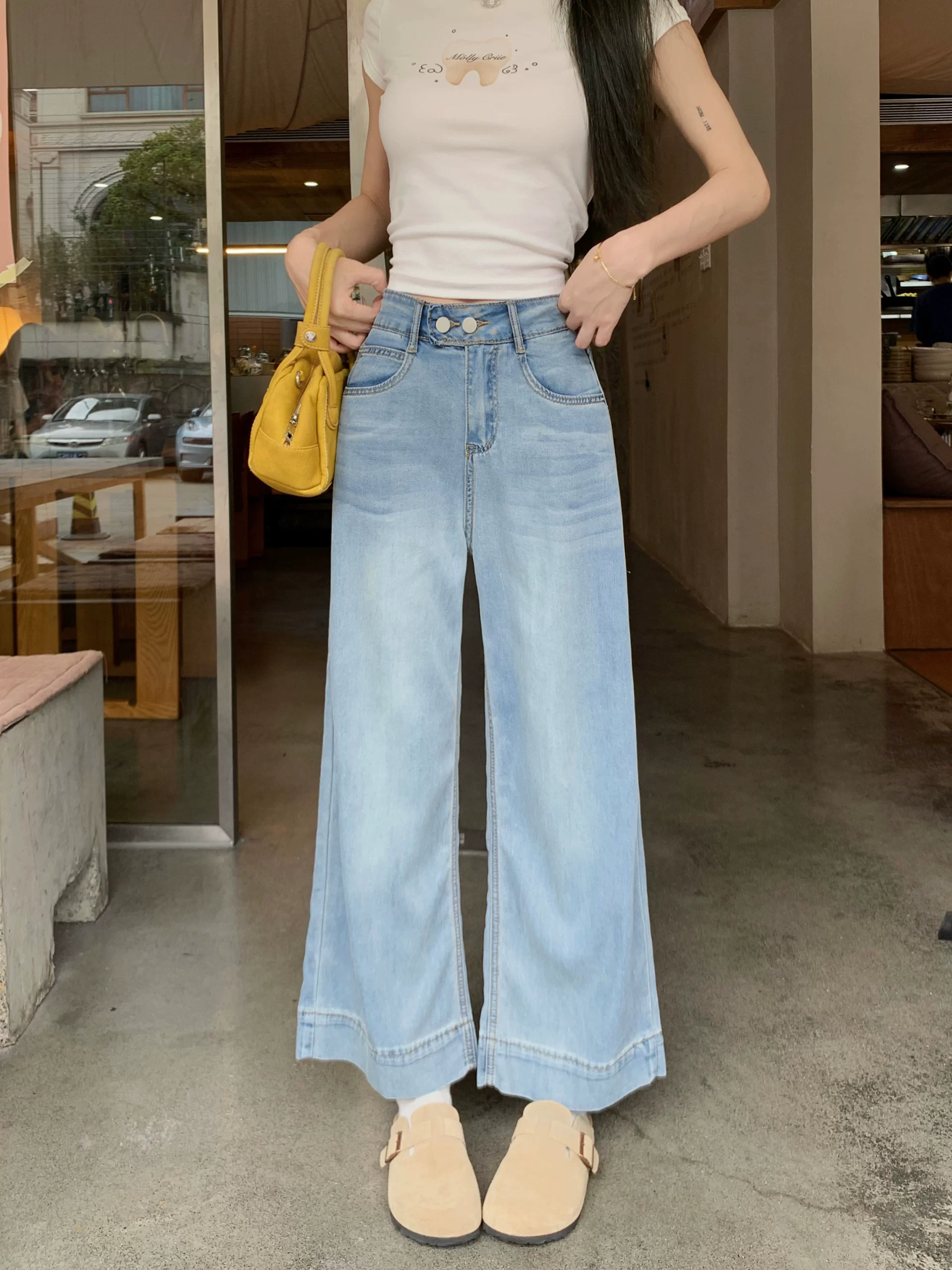 | nameOriginal | Korean style versatile high-waisted wide-leg jeans with ice silk stitching |