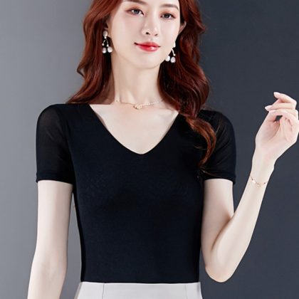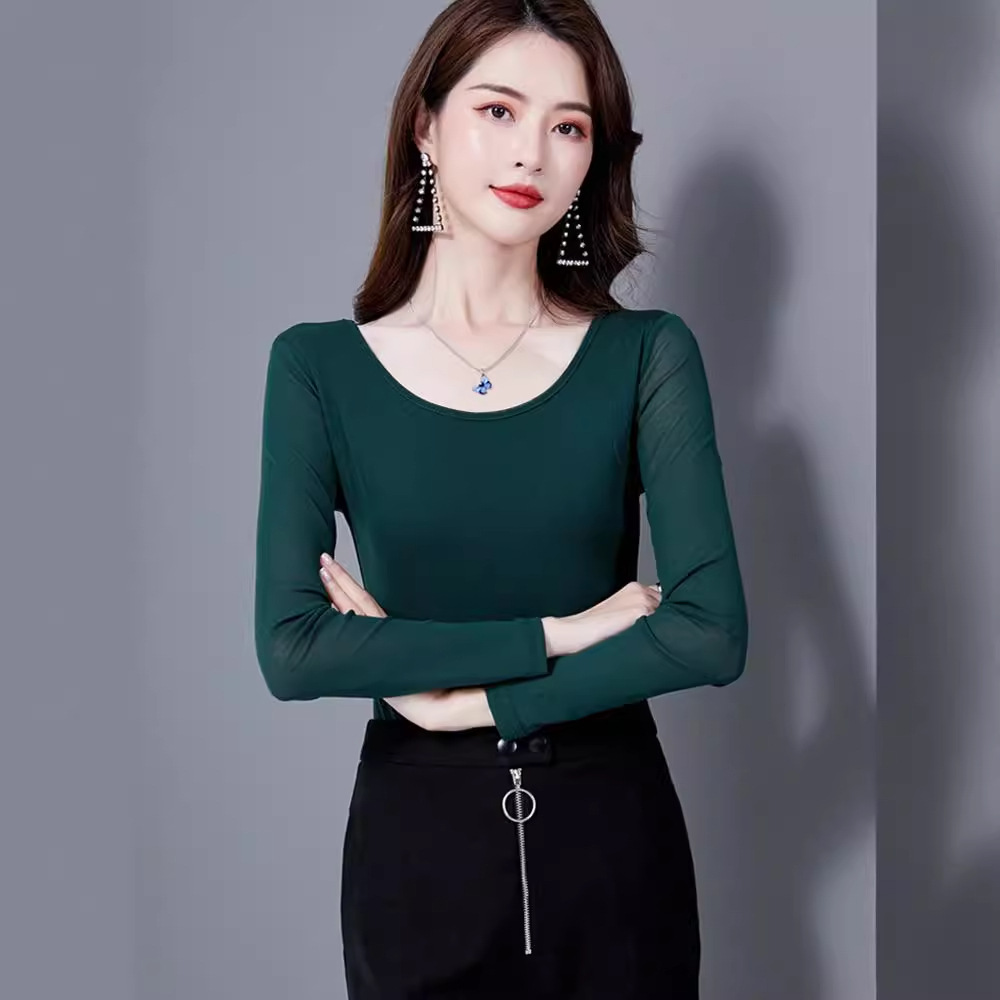 | nameOriginal | Korean style women's top half sleeve t-shirt women's 2021 Spring and Autumn new solid color basic round neck mesh bottoming shirt |