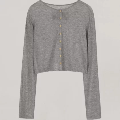 سترة كورية رفيعة ذات رقبة مستديرة وأكمام طويلة للحماية من الشمس
