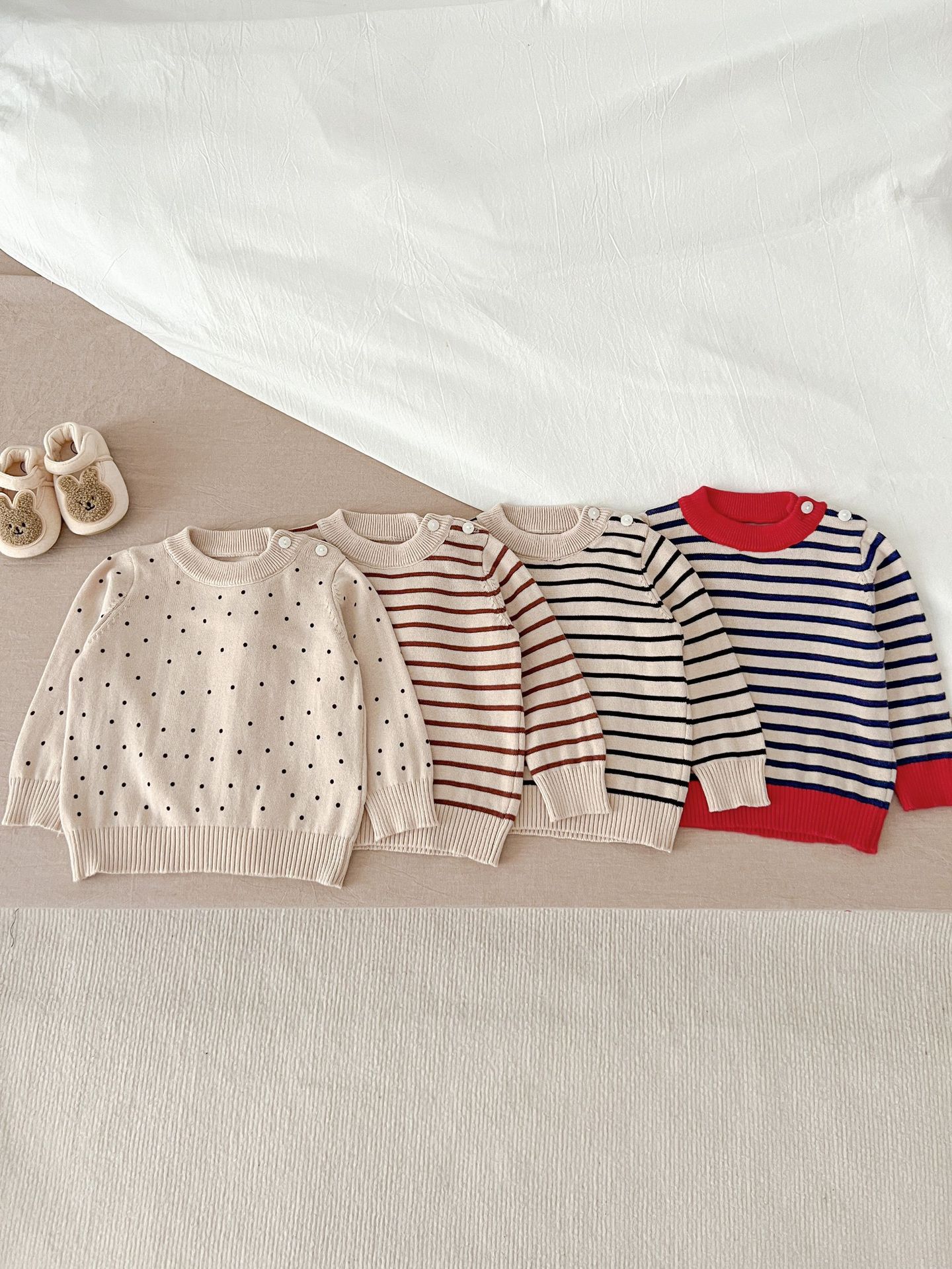 | nameOriginal | Korean version of baby sweater men's and women's baby round neck western style striped wave dot base shirt newborn cotton wholesale |