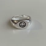 | nameOriginal | Korean version of smiley bread ring for women, retro fashionable character, simple personality, S925 silver open ring, index finger ring, trendy |