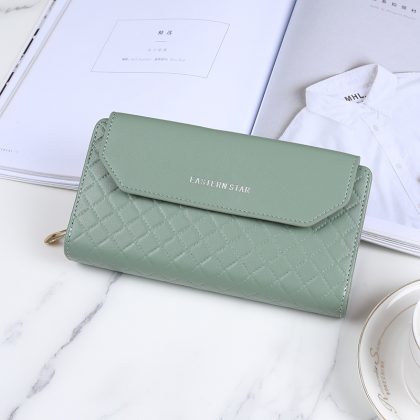 النسخة الكورية من محفظة بسيطة بلون واحد للنساء بسحاب طويل معيني سعة كبيرة متعددة الوظائف محفظة يد للتجارة الخارجية عبر الحدود