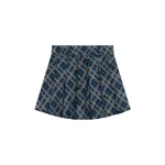 kumikumi contrast plaid pleated A-line short-sleeved T-shirt