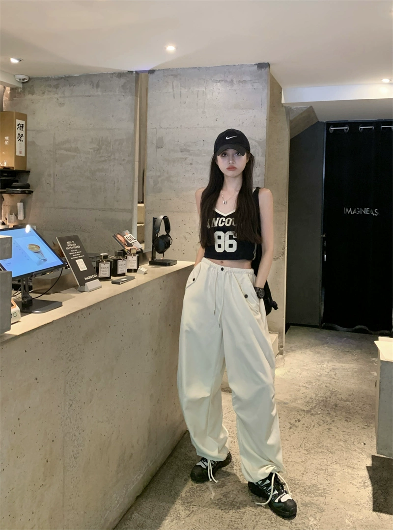 Kumikumi Contrast Stripe Sports Cargo Pants Suspenders