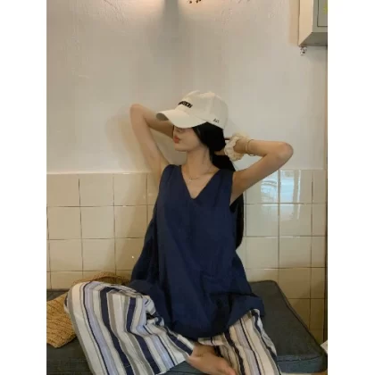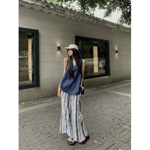| nameOriginal | kumikumi dark blue casual pants V-neck suspenders |